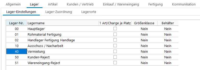 Hierfür kann beispielsweise das Lager “40 - Vermietung” dienen.