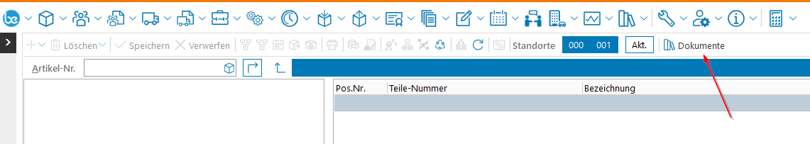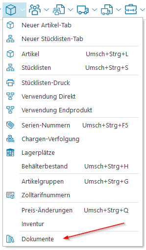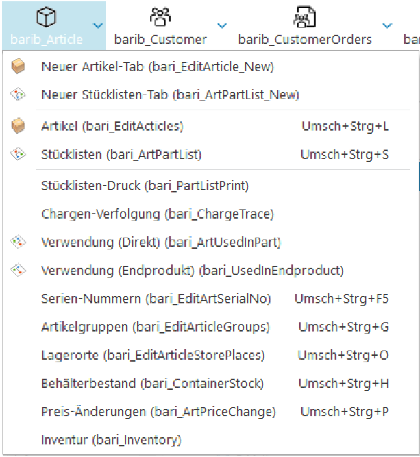 Beispiel 2: Einbindung im Untermenü des Artikelstamms in der Haupttoolbar: